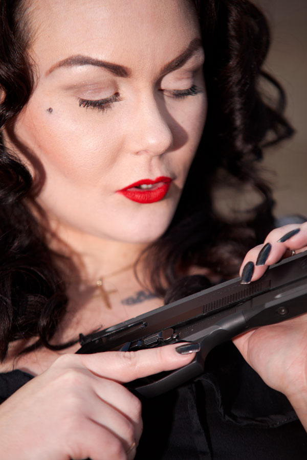 Some time ago I decided it'd be pretty cool to photograph ladies armed with some interesting weapons, I'd seen images online featuring "Instamodels" grasping cap guns and wasn't impressed, there are more weapons out there than toy guns so I put the word out and the response was interesting to say the least. Not all of the weapons are firearms, there are other weapons including cut throat, straight edge razors, axes and whips just to name a few.